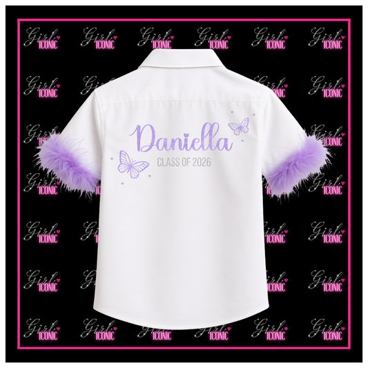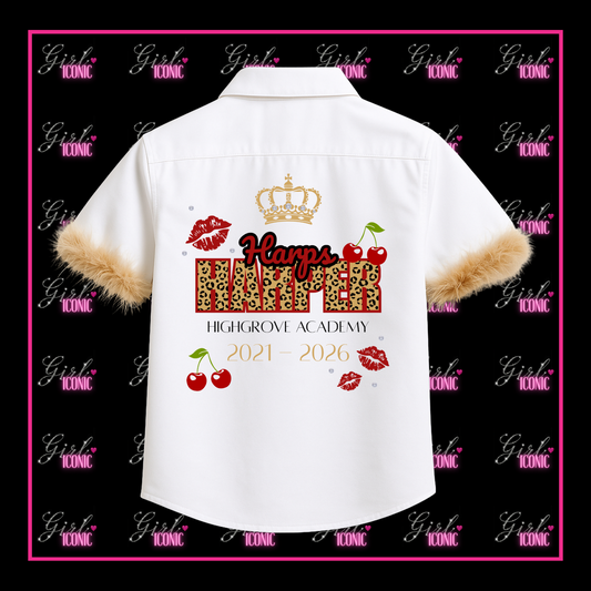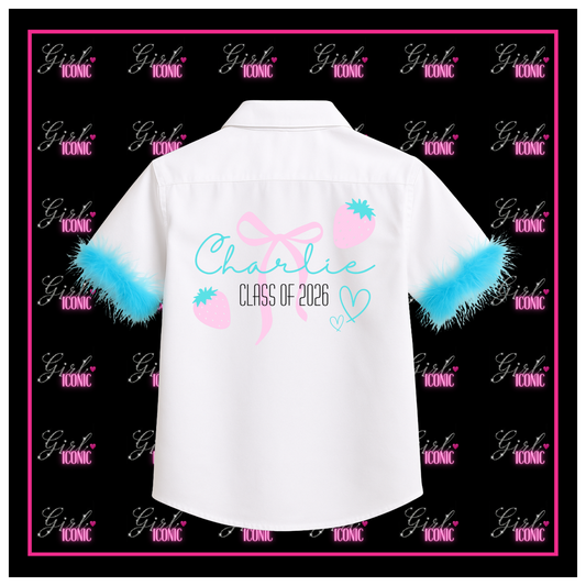 Personalised School Leavers Shirt with Crystal Sleeves - Fashion Secret