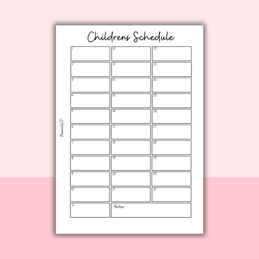 Children’s Schedule - Pastel Passion - Set of 12 Page Inserts