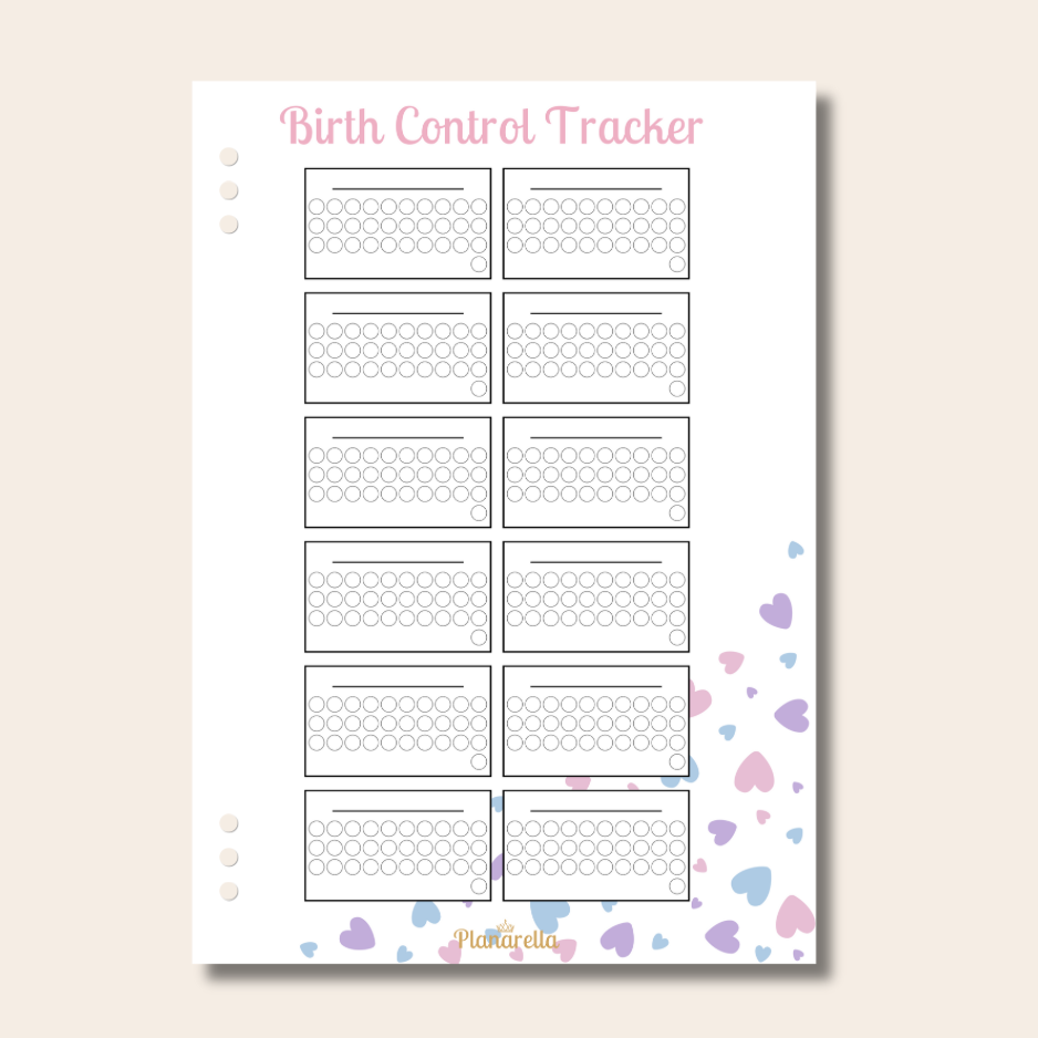 Reduce the anxiety of missed doses our yearly birth control tracker. This planner insert provides a visual representation of your birth control schedule, allowing you to confidently manage your routine. Achieve peace of mind and stay on top of your reproductive health with this essential planner page in our gorgeous Pastel Passion theme.